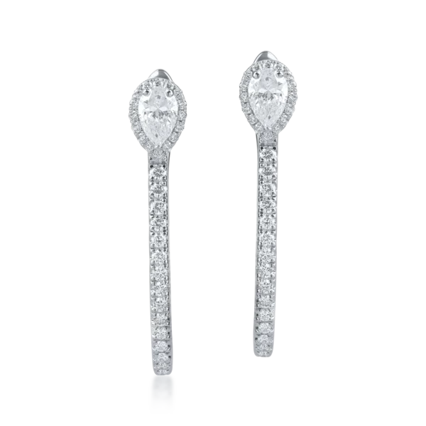 Cercei din aur alb cu diamante marquise, pear si rotunde microsetting de 1.8ct