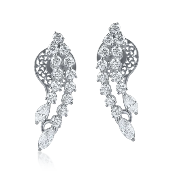 Cercei din aur alb cu diamante marquise, princess si rotunde de 1.63ct