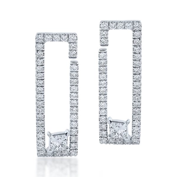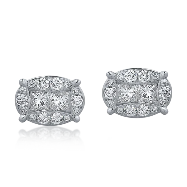 Cercei din aur alb cu diamante princess si rotunde de 1.24ct