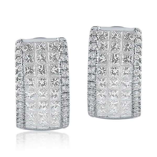 Cercei din aur alb cu diamante princess si round de 2.4ct
