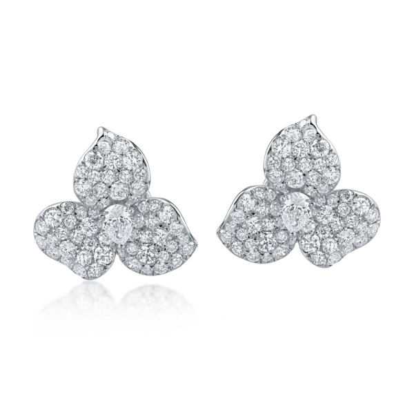 Cercei din aur alb cu diamante pear si round de 1.9ct