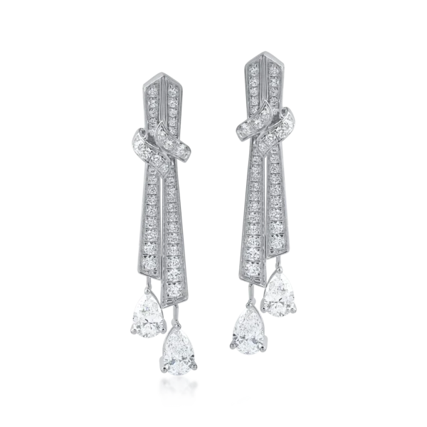 Cercei din aur alb cu diamante pear si round de 2.66ct
