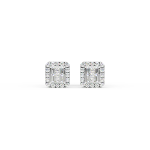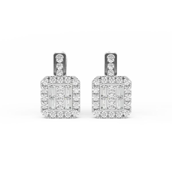 Cercei din aur alb cu diamante princess,baguette si rotunde de 1.35ct