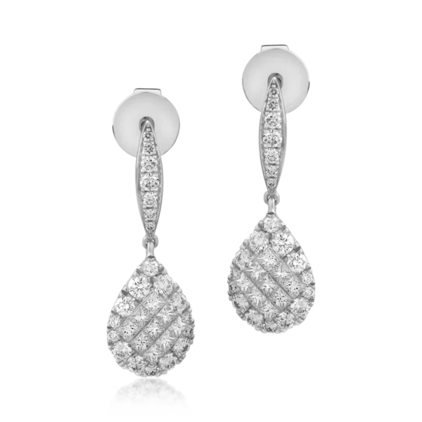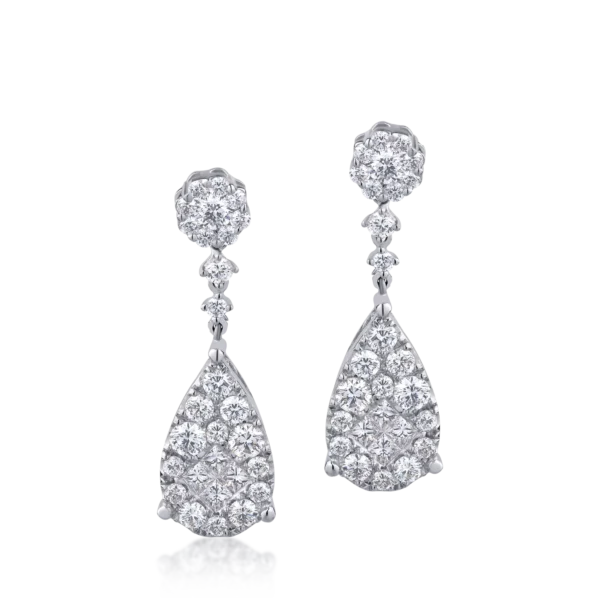 Cercei din aur alb cu diamante pear si round microsetting de 2.4ct