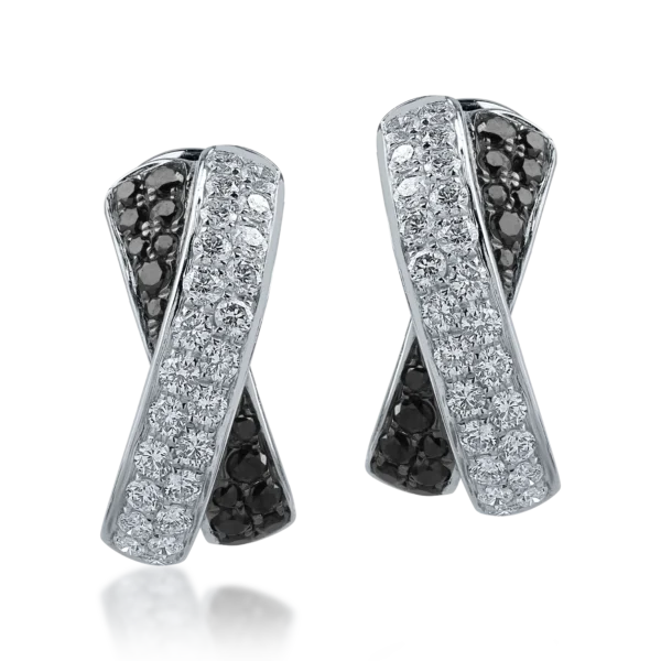 Cercei din aur alb cu diamante transparente de 0.78ct si diamante negre de 0.41ct