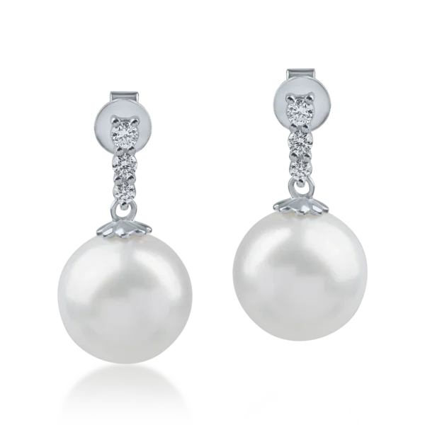 Cercei din aur alb cu perle de cultura de 19.6ct si diamante de 0.1ct