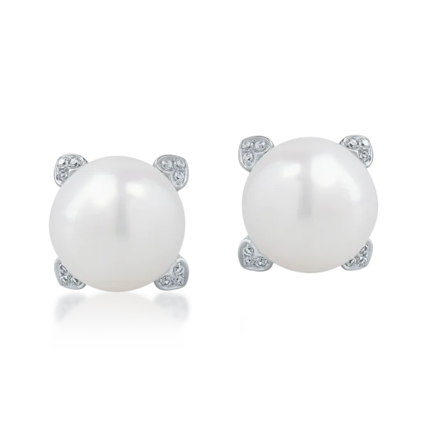 Cercei din aur alb cu perle de cultura de 21.6ct si diamante de 0.1ct