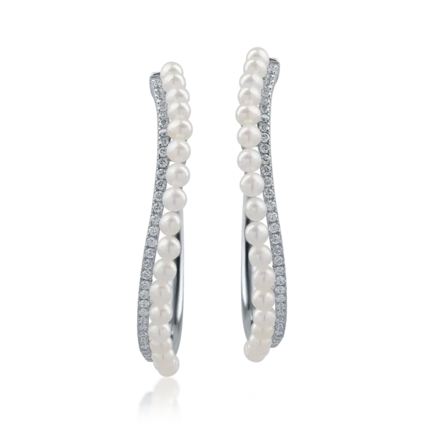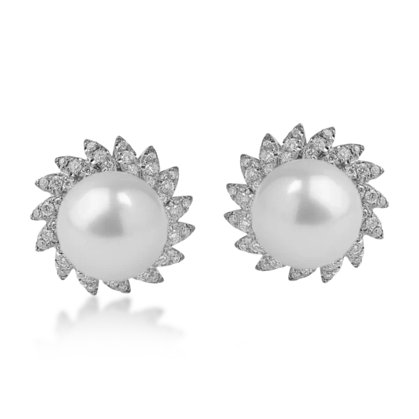 Cercei din aur alb cu perle de cultura de 5.04ct si diamante de 0.5ct