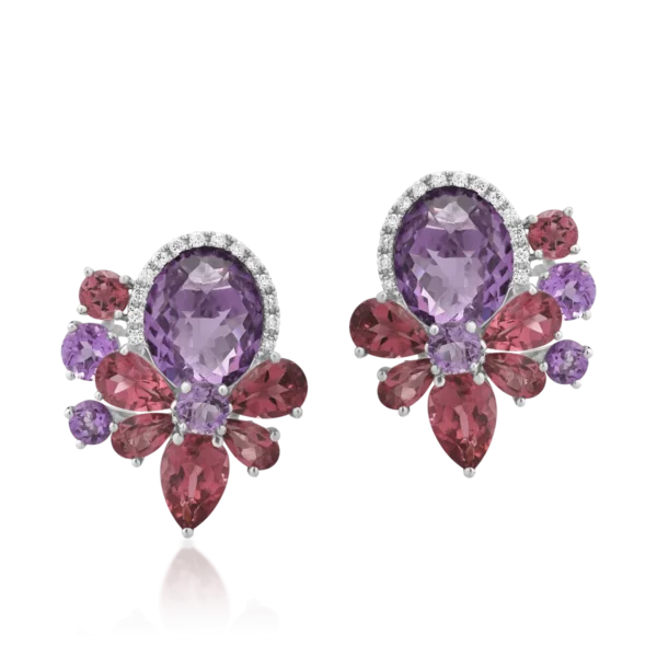 Cercei din aur alb cu pietre pretioase si semipretioase de 18.65ct