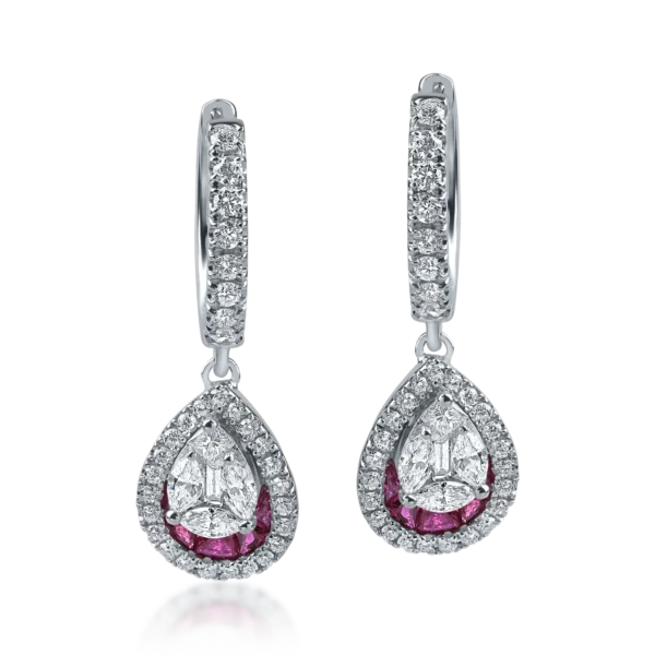 Cercei din aur alb cu rubine de 1.2ct si diamante de 0.67ct