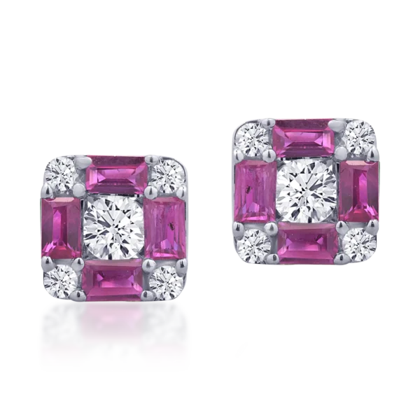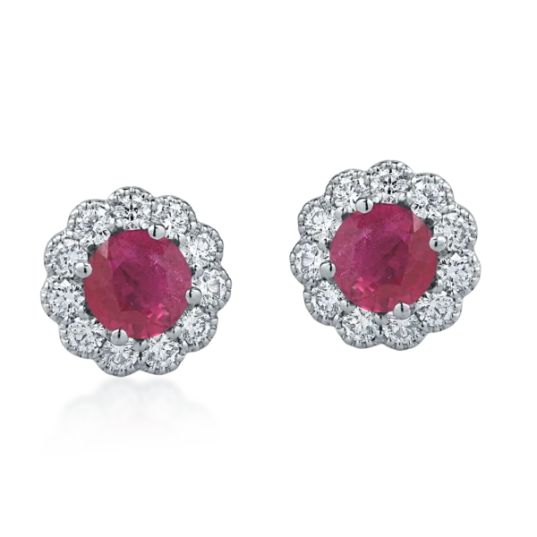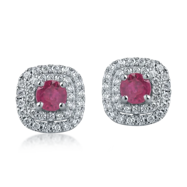 Cercei din aur alb cu rubine de 0.5ct si diamante de 0.4ct