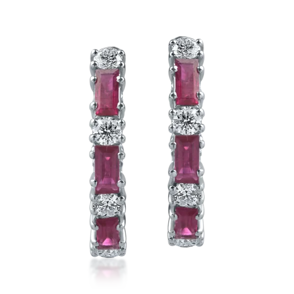 Cercei din aur alb cu rubine baguette de 0.94ct si diamante rotunde de 0.38ct