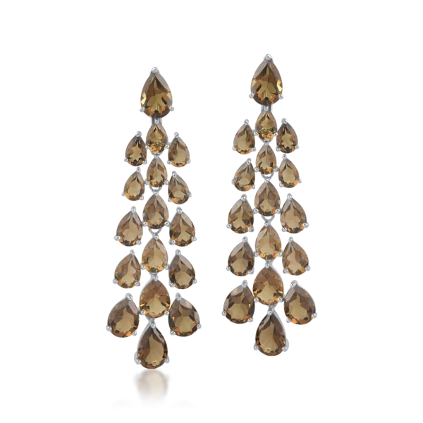 Cercei din aur alb cu quartz fumuriu pear de 24.04ct