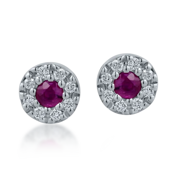 Cercei din aur alb cu rubine de 0.17ct si diamante de 0.08ct