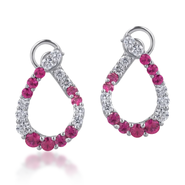 Cercei din aur alb cu rubine de 0.68ct si diamante de 0.32ct