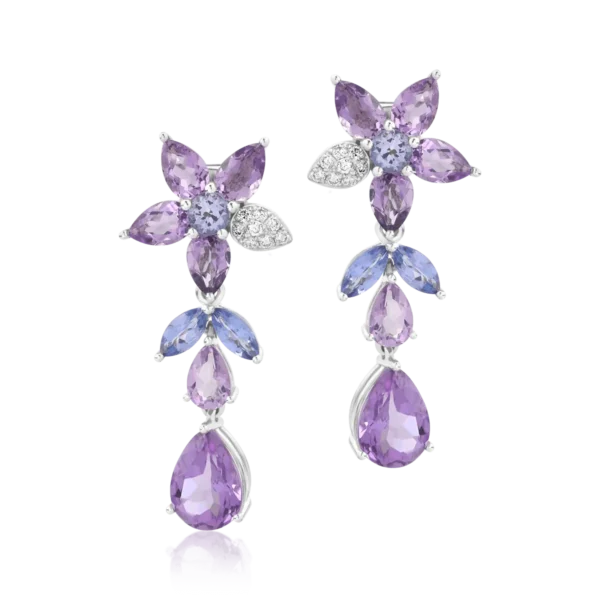 Cercei din aur alb cu pietre pretioase si semipretioase de 9.39ct