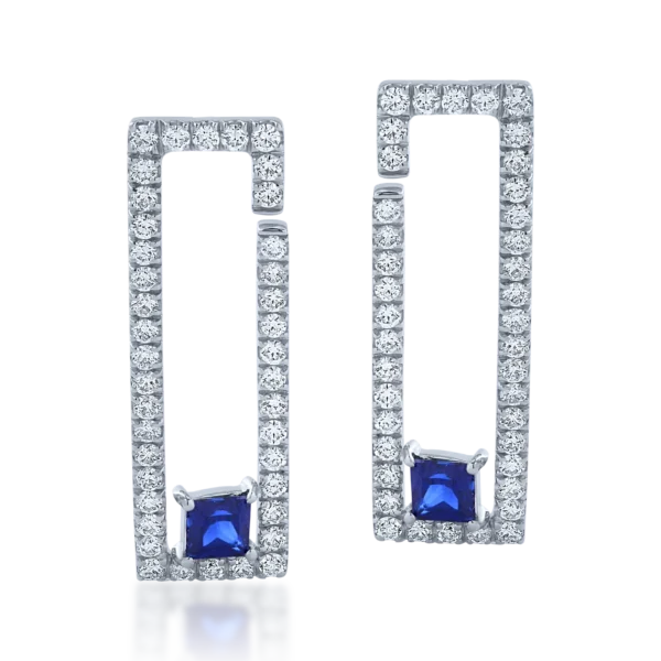 Cercei din aur alb cu safire rectangulare de 0.62ct si diamante de 0.79ct