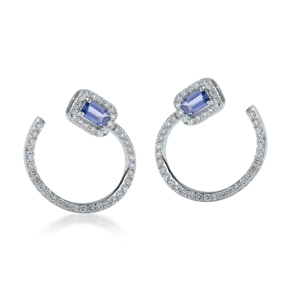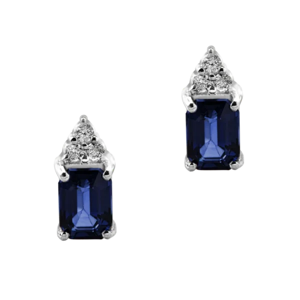 Cercei din aur alb cu safire rectangulare de 2.215ct si diamante de 0.116ct