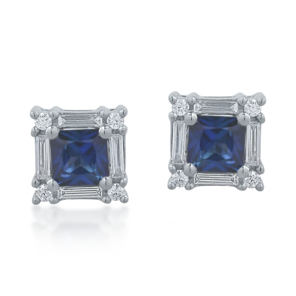Cercei din aur alb cu safire princess de 0.15ct si diamante de 0.06ct