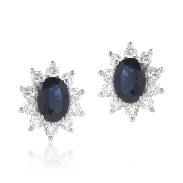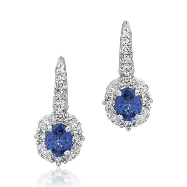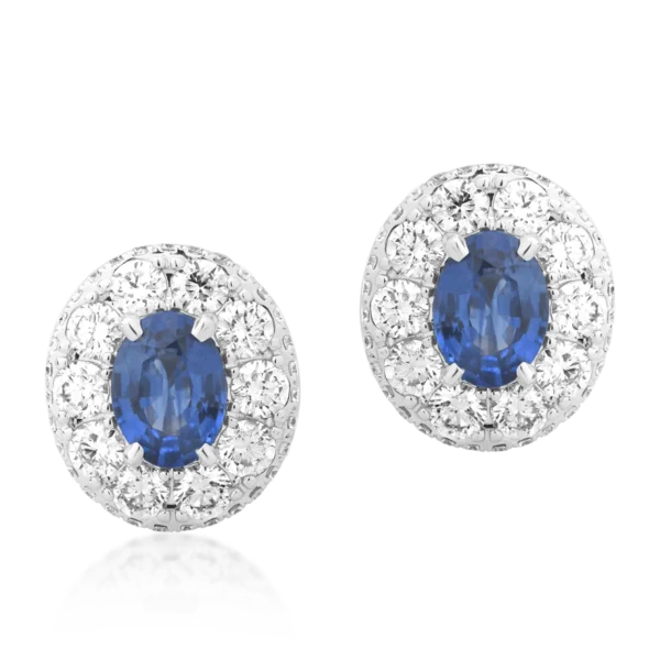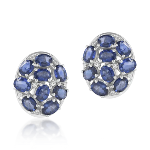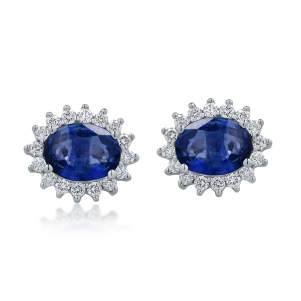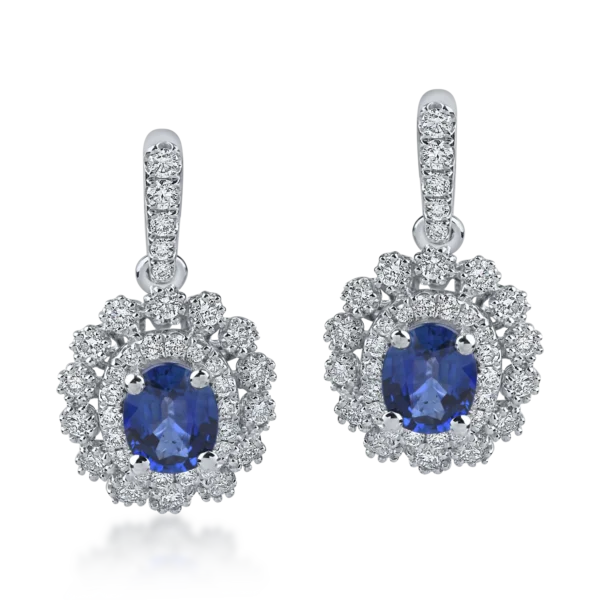 Cercei din aur alb cu safire ovale si diamante de 1.3ct