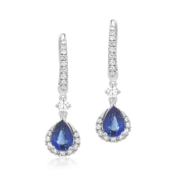 Cercei din aur alb cu safire pear de 1.47ct si diamante de 0.44ct