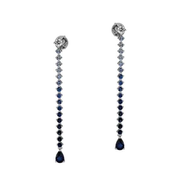 Cercei din aur alb cu safire pear si rotunde de 2.48ct si diamante de 0.31ct