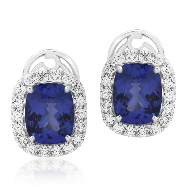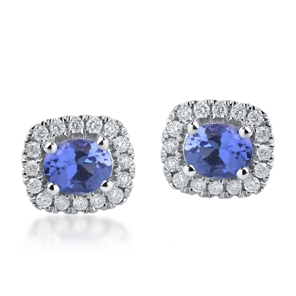 Cercei din aur alb cu tanzanite princess de 0.775ct si diamante de 0.05ct
