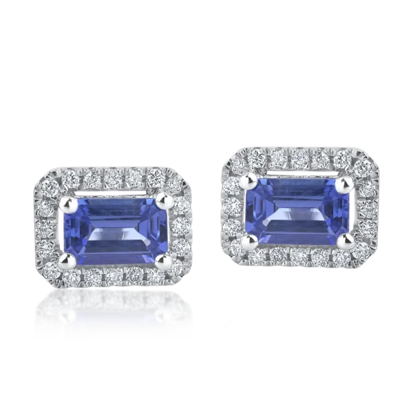 Cercei din aur alb cu tanzanite rectangulare de 1.26ct si diamante de 0.2ct