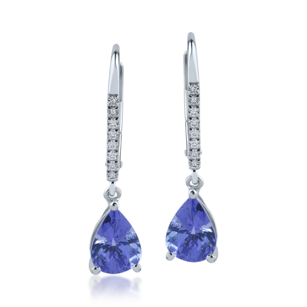 Cercei din aur alb cu tanzanite pear de 2.13ct si diamante de 0.12ct
