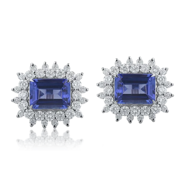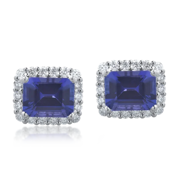 Cercei din aur alb cu tanzanite rectangulare de 3.31ct si diamante de 1.26ct