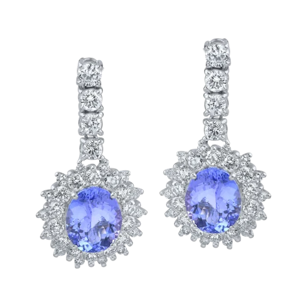 Cercei din aur alb cu tanzanite ovale de 5.51ct si diamante round de 2.448ct