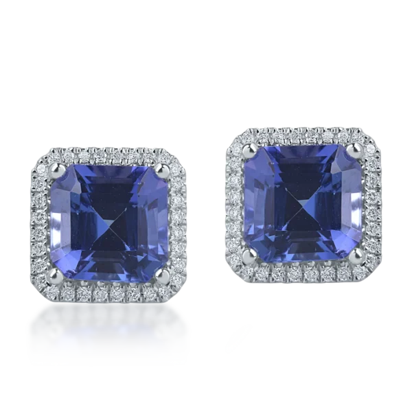 Cercei din aur alb cu tanzanite square de 7.14ct si diamante round de 0.52ct