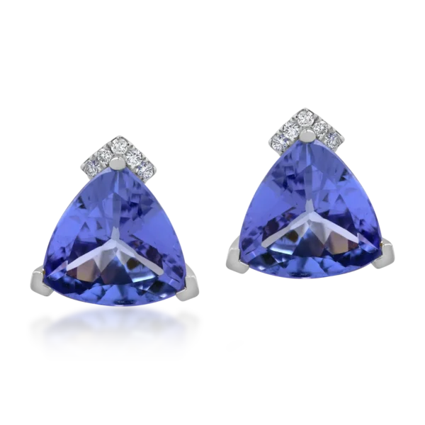 Cercei din aur alb cu tanzanite trillion de 4.41ct si diamante de 0.05ct