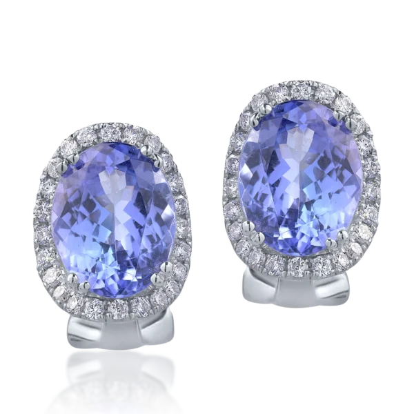 Cercei din aur alb cu tanzanite ovale de 4.74ct si diamante round de 0.38ct