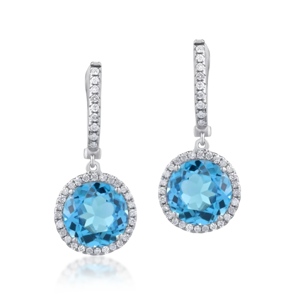 Cercei din aur alb cu topaze albastre de 7.87ct si diamante de 0.41ct