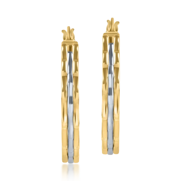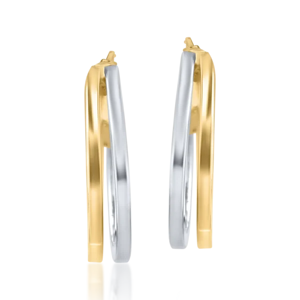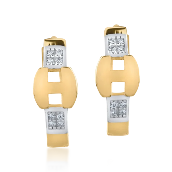 Cercei din aur alb-galben cu diamante de 0.102ct