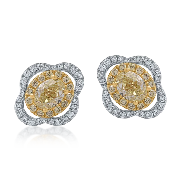 Cercei din aur alb-galben cu fancy diamonds de 0.314ct si diamante de 0.137ct