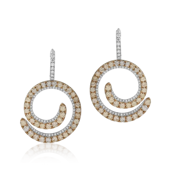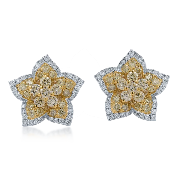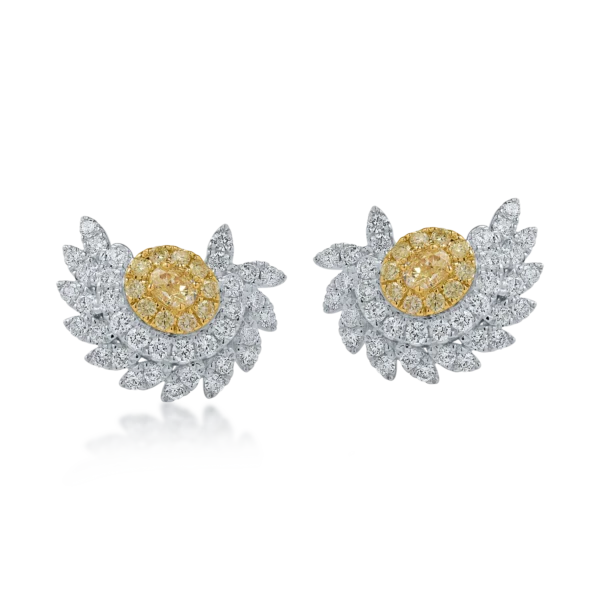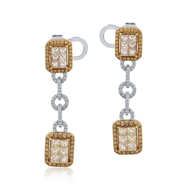 Cercei din aur alb-galben cu diamante galbene si incolore de 1.9ct