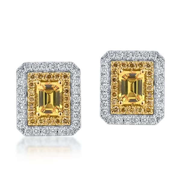 Cercei din aur alb-galben cu safire galbene octogonale de 0.77ct si diamante de 0.42ct