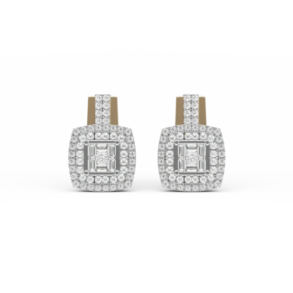 Cercei din aur alb-galben cu diamante princess,baguette si rotunde de 0.58ct