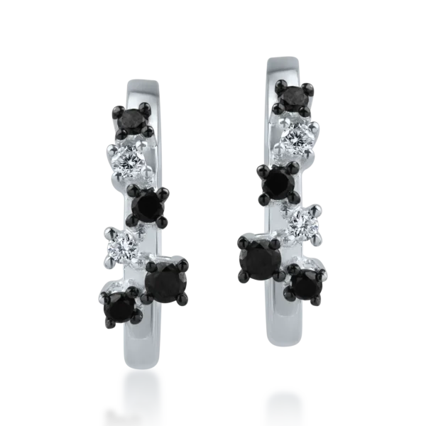 Cercei din aur alb-negru cu diamante negre de 0.16ct si diamante transparente de 0.06ct