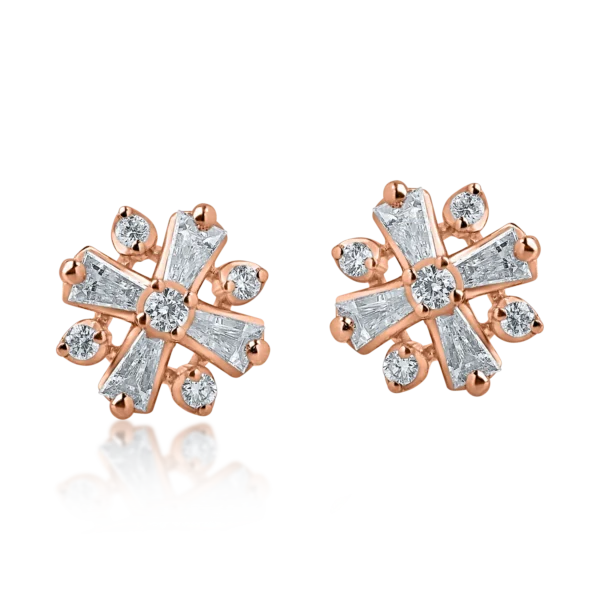 Cercei cu surub din aur roz cu diamante baguette si rotunde de 0.35ct