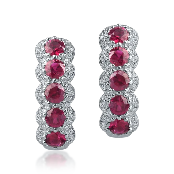 Cercei cu tortite din aur alb cu rubine si diamante de 1.5ct