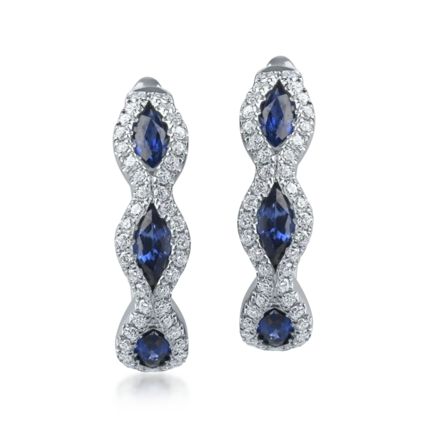 Cercei cu tortite din aur alb cu safire si diamante de 1.1ct