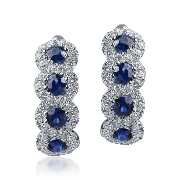Cercei cu tortite din aur alb cu safire si diamante de 1.9ct