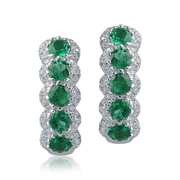 Cercei cu tortite din aur alb cu smaralde si diamante de 1.2ct