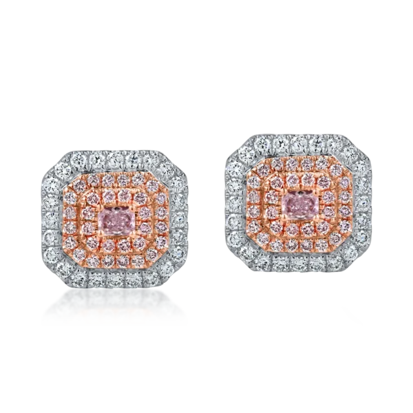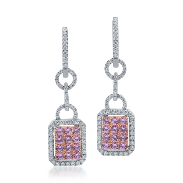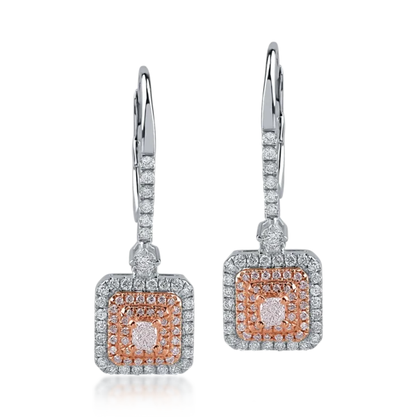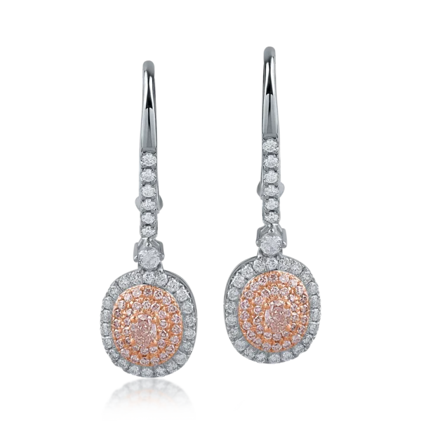 Cercei din aur alb-roz cu diamante roz de 0.62ct si diamante incolore de 0.53ct