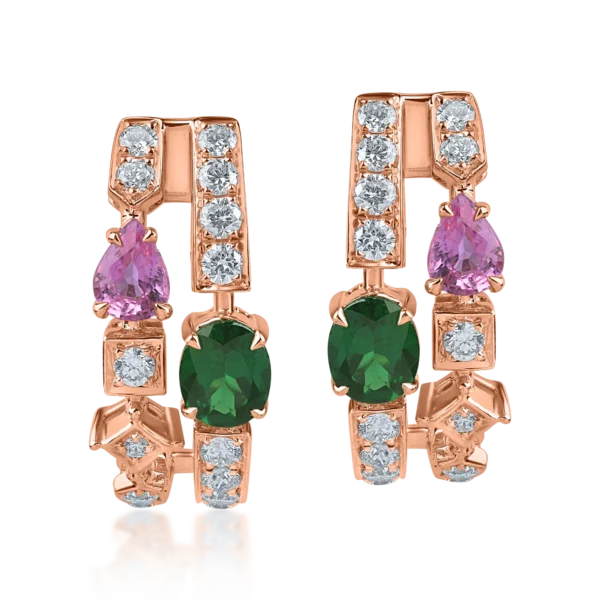 Cercei din aur alb-roz cu pietre pretioase si semipretioase de 2.7ct