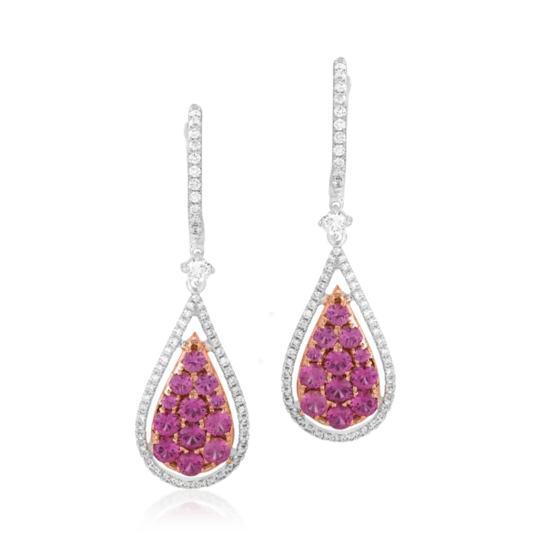 Cercei din aur alb-roz cu safire roz de 1.53ct si diamante de 0.49ct