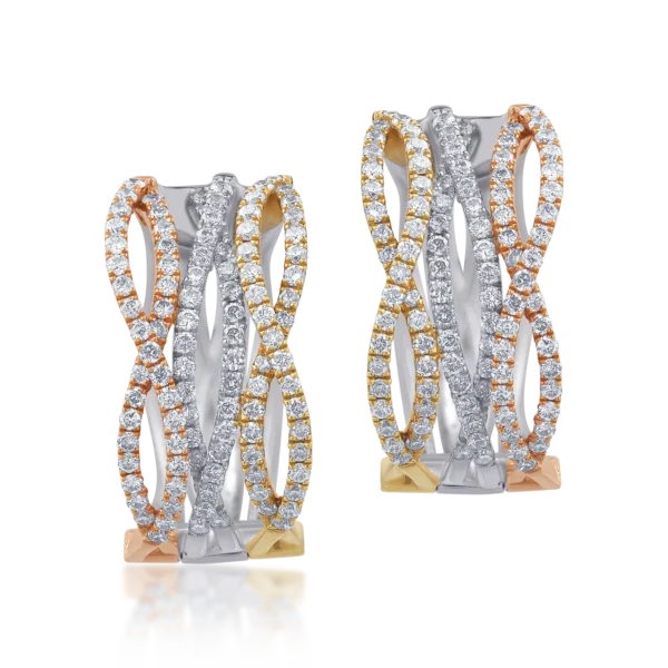 Cercei din aur alb-roz-galben cu diamante de 0.84ct